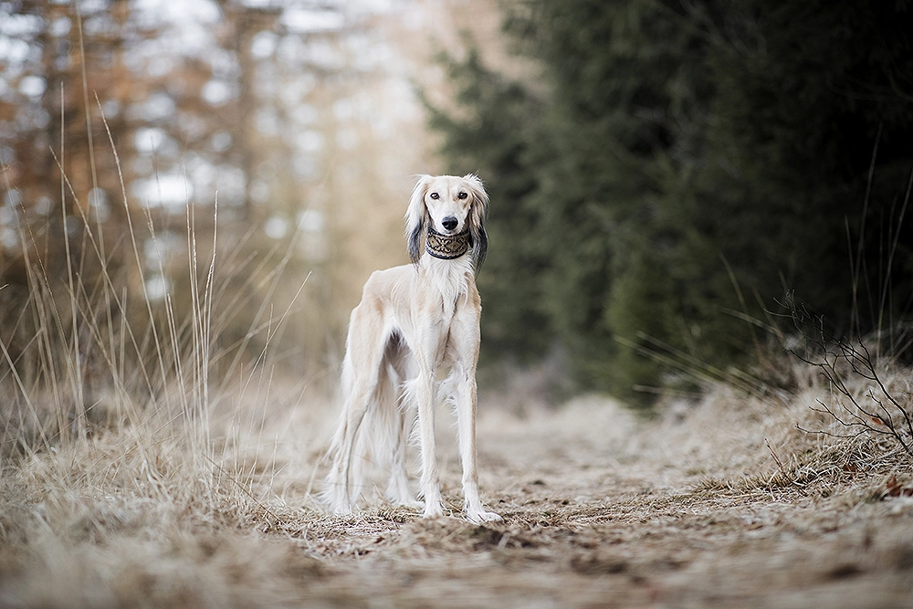 Een Saluki is extreem gevoelig, heel eigengereid en op zichzelf. Eigenlijk moet je niets van ze verwachten. Je kunt vragen of ze iets willen, maar of ze het ook doen dat kun je alleen maar hopen. Toen we een Saluki kochten vertelde iemand ons dat je een Saluki ook geen commando’s als “zit” of “af” kunt leren. Ze doen wat ze zélf willen en wanneer ze dat zelf willen. Net als katten. Ze komen bij je als zíj het willen. Ze verblijden je met hun aanwezigheid op hún tijd. Een Saluki heeft ook geen baas, maar personeel, net als katten. Als ze toch komen als je het vraagt, is dat omdat ze dat zelf ook eigenlijk wel wilde. Je kunt soms echt op je kop gaan staan, maar als ze iets anders in haar hoofd heeft, dan is dát wat gaat gebeuren.