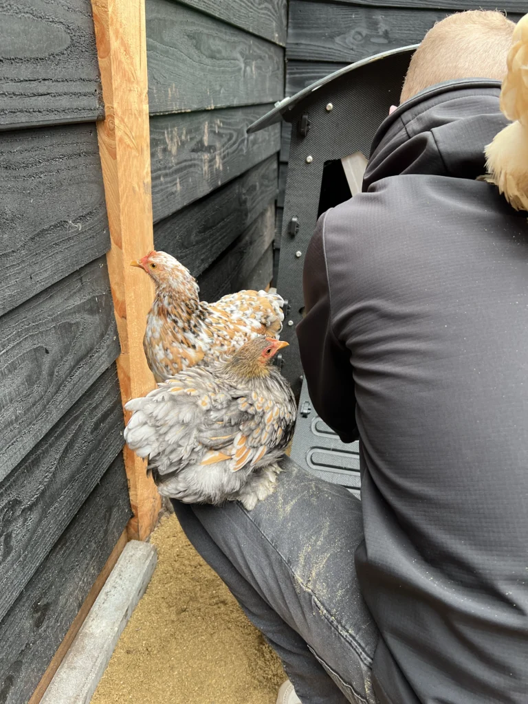 Ze hebben vannacht voor het eerst in hun nieuwe nachthok geslapen en dat ging heel goed. 🤩 We waren gisteravond pas om 22:00 klaar, maar we móesten en zouden doorzetten dat ze erin konden, haha. Ze accepteerden het heel goed en hebben rustig geslapen. 😁🐓
