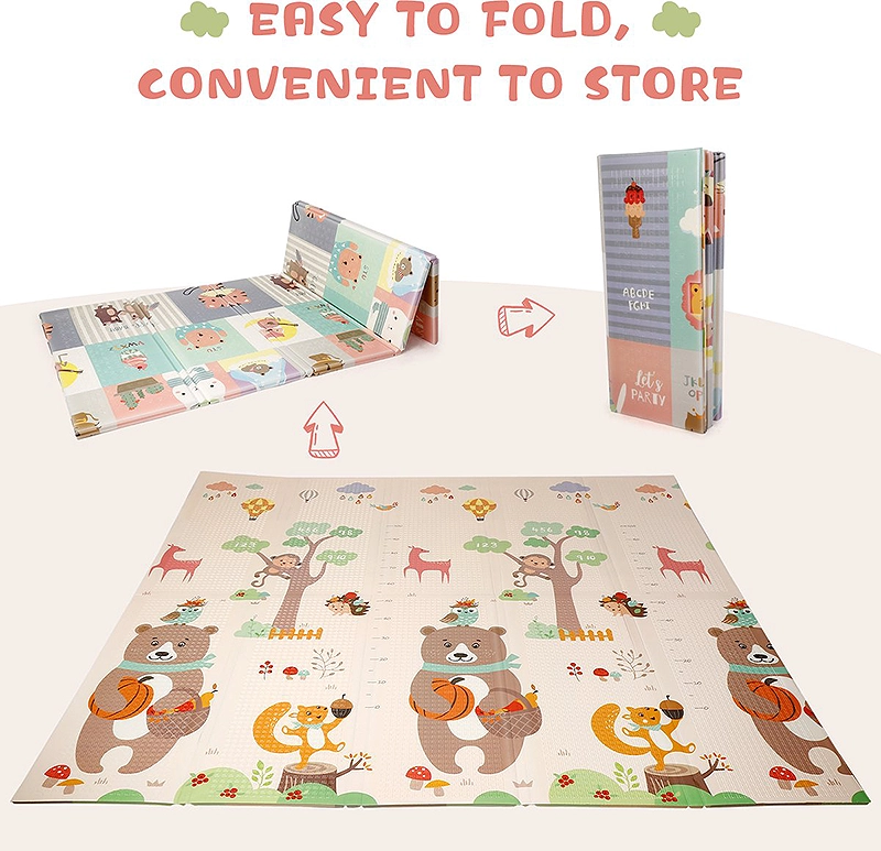 Je wil het liefst een grote speelmat, want je baby moet kunnen bewegen en ontwikkelen. En niet na één keer omrollen alsnog op de grond liggen. Deze speelmat is heel groot (180×200), maar je vouwt hem binnen een paar seconde op tot een heel praktisch pakketje! Je kunt hem dus heel makkelijk in- en uitvouwen. Wij kunnen hem trouwens ook precies onder de box schuiven, als hij opgevouwen is. Dus dan ben je hem ook meteen helemaal kwijt.
