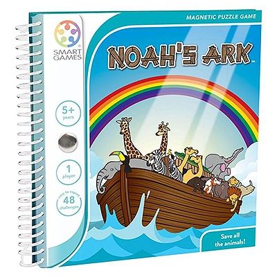 Met dit reisspel val je zeker niet uit de boot! Alle dieren moeten in de ark. Telkens zij aan zij, per paar, zodat soort bij soort blijft. Zorg ervoor dat alle tien de dieren met de poten op de plankenvloer blijven en dat iedereen mee kan!